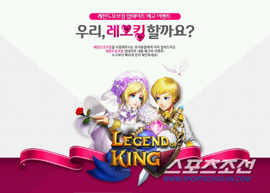쿤룬코리아는 모바일 3D MMORPG '레전드오브킹'의 대규모 업데이트를 앞두고 '프로포즈 이벤트'를 진행한다.