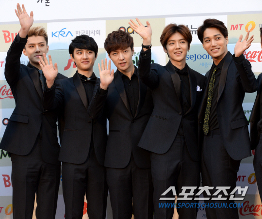 가온차트 K-POP 어워드 엑소. 제3회 가온차트 K-POP 어워즈가 11일 서울 올림픽공원 체조경기장에서 열렸다. 시상식 전 열린 레드카펫 행사에서 엑소가 포즈를 취하고 있다. 허상욱 기자 wook@sportschosun.com