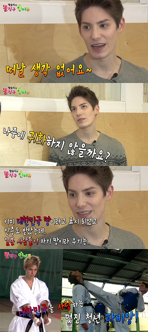 인터뷰에서 파비앙은 "5세 때부터 태권도를 시작해서 한국에 관심을 갖게 됐다. 13세 때부터 프랑스 태권도 국가대표 생활을 했는데 대학 졸업 후 바로 한국으로 왔다"고 설명했다. 이어 "처음에는 궁금해서 한국에 왔는데 와보니까 매우 좋아서 못 떠나겠다. 떠나면 너무 슬프고 한국이 그립다"며 한국에 대한 남다른 애정을 드러냈다.