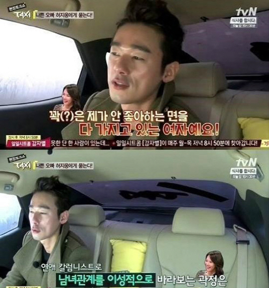 방송에서 허지웅은 연애 칼럼리스트 곽정은과의 열애설에 "내가 안 좋아하는 면을 다 가지고 있는 여자"라며 "꽉(곽정은)이랑은 아무 관계도 아니다"고 곽정은이 방송에서 설명하는 연애 기술에 대해 부정적인 의견을 밝혔다.