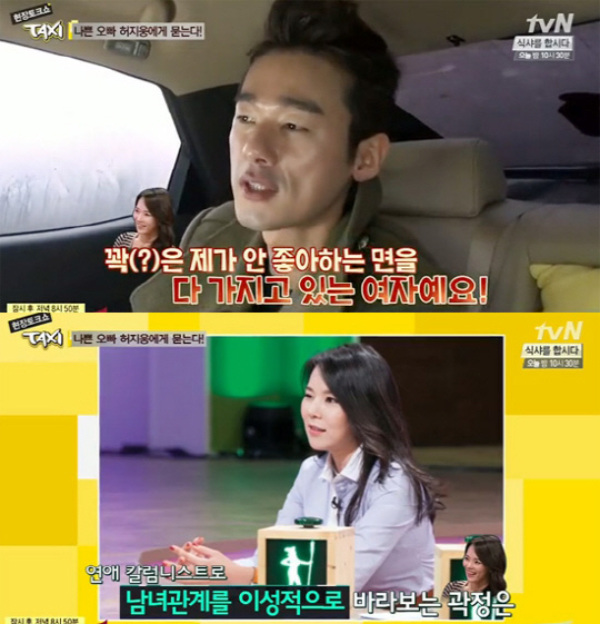 방송에서 허지웅은 연애 칼럼리스트 곽정은과의 관계를 묻는 질문에 "내가 안 좋아하는 면을 다 가지고 있는 여자"라며 "꽉(곽정은)이랑은 아무 관계도 아니다"고 곽정은이 방송에서 설명하는 연애 기술에 대해 부정적인 의견을 밝혔다.