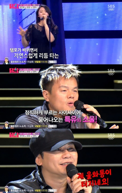 이어 박진영은 "갑자기 누군지 모르겠다. 정직하게 정도로 제대로 부르려하는데도 느낌이 묻어 나오는 거였다"며 "발음 목소리를 꾸미기 시작하니까 순수함과 정직함과 끼가 함께 나오던 감동이 없고 끼만 남은 거 같다"고 심사평을 전했다.