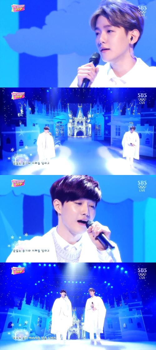 수호와 백현은 16일 방송된 SBS '인기가요'에서 MC 데뷔에 앞서 특별 무대를 가졌다.