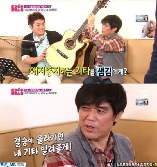 16일 방송된 SBS '일요일이 좋다-서바이벌 오디션 K팝스타 시즌3'에서는 안테나 뮤직 유희열의 도움을 받아 배틀 오디션을 앞둔 샘김이 함춘호를 만나는 장면이 그려졌다.