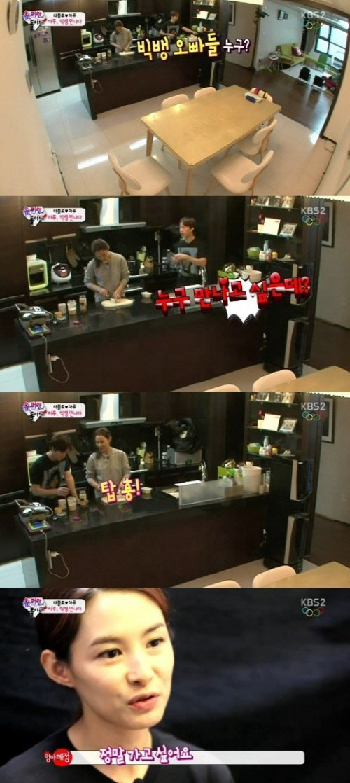 이날 방송에서 아침을 준비하던 강혜정은 "나도 빅뱅 오빠들 만나고 싶어"라고 털어놨다.