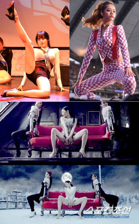 짙은 메이크업과 하의실종을 연상케 하는 짧은 하의로 '섹시 콘셉트'로 중무장한 이들은 모두 뇌쇄적인 눈빛을 발산하며 하나같이 '쩍벌 댄스'를 추고 있다.