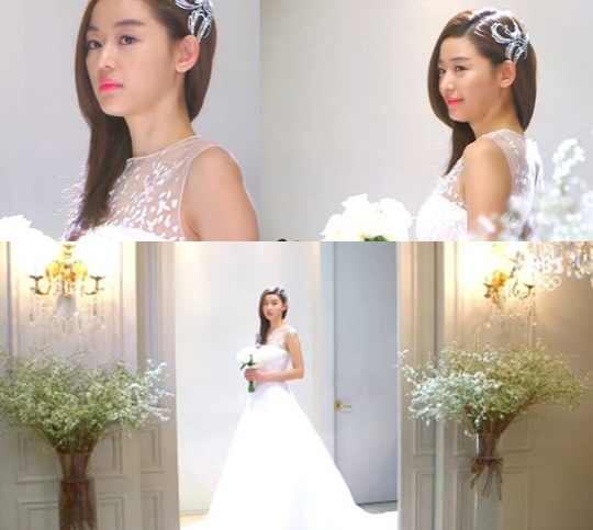 단아하면서도 아름다움이 묻어나는 천송이의 웨딩드레스 자태는 시청자들의 눈길을 사로잡았다.