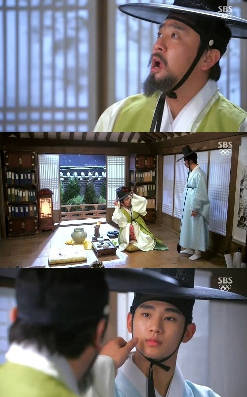 이날 허균(류승룡 분)은 소설 홍길동전의 집필을 준비하며 도술을 쓰는 홍길동을 제대로 표현하기 위해 도민준(김수현 분)에게 자문을 구했다. 도민준이 도술을 쓴다는 소문을 듣고 아이디어를 얻기 위해 찾아간 것.