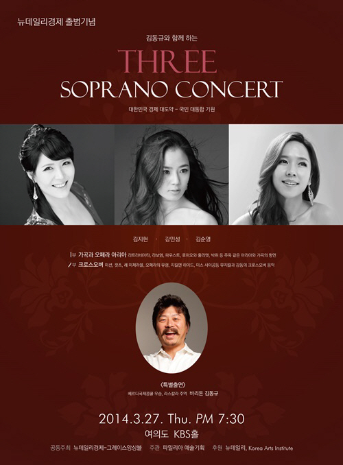 세계적인 바리톤 김동규와 함께 하는 쓰리 소프라노 콘서트가 오는 3월 27일 여의도 KBS홀에서 열린다.