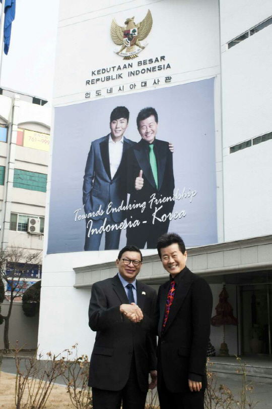 주한 인도네시아 대사관이 설립 된 이래 최초의 배너에 한국 가수 부자의 모습이 게재된 것이기에 더욱 값진 성과로 평가 받고 있으며, 이루, 태진아 부자의 모습이 담긴 배너는 1년간 주한 인도네시아 대사관 외벽에 거치된다.