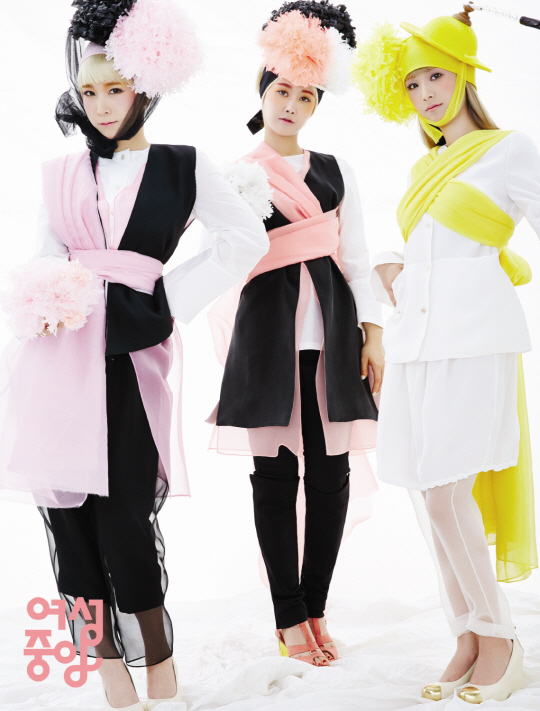 상모 콘셉트로 변신을 시도한 크레용팝의 화보는 여성중앙 3월호에서 만나볼 수 있다.