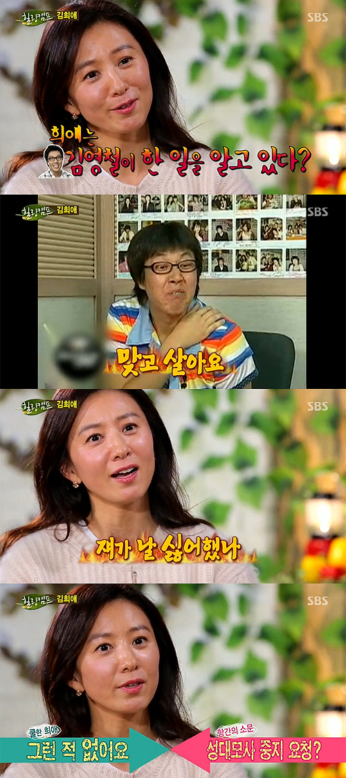 또 김희애는 "김영철에게 성대모사 안 했으면 좋겠다고 말한 적 없다"며 "스스로 발이 저려서 그런 거다"라고 폭로했다. 이를 들은 성유리도 "그런 얘기도 김영철이 하고 다닌다더라"고 덧붙여 폭소케 했다.