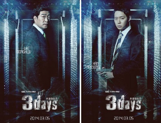 SBS 새 수목드라마 '쓰리데이즈'의 주연을 맡은 손현주, 박유천의 포스터가 공개돼 인기를 모으고 있다.