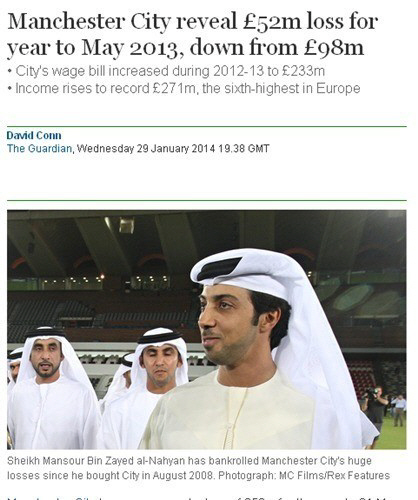 실제로 만수르는 지난 5년간 7억 1000만 파운드(1조2700억원)에 달하는 막대한 돈을 맨체스터 시티에 쏟아부었다. 팬들을 위해 홈구장 히팅 좌석을 도입하는가 하면 새로 지은 구장까지 이어지는 전용 모노레일을 건립하기도 했다. 또한 선수 개개인에게 1년마다 영국의 고급 차량인 '재규어'의 신모델을 증정하고 있다.