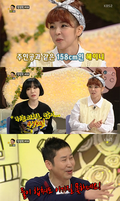 이 사연에 MC들은 게스트로 나온 혜이니와 가인에게 몸무게를 물어봤다.