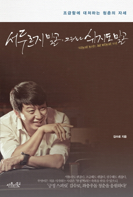 그가 결국 하고 싶은 말은 책 제목 '서두르지 말고, 그러나 쉬지도 말고'에 나와 있다. 빨리 가는 것보다 제대로 된 길을 가는 것이 중요하다는 것. 도덕 교과서 같은 그의 말이 진부하지 않게 다가오는 건 그의 진심이 녹아 있기 때문일 것이다. (김수로 지음 / 센츄리원 / 1만4000원) 김표향 기자 suzak@sportschosun.com