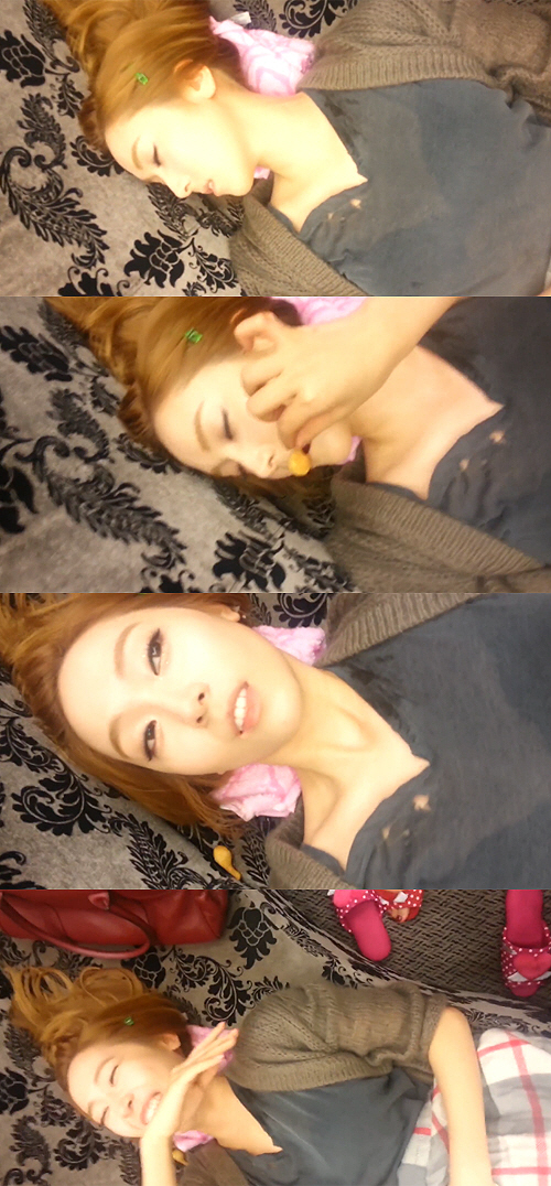잠이 든 상황에서도 제시카는 반사적으로 실눈을 뜬 채 과자를 바라봤고, 과자를 주고 이 모습을 촬영하던 써니는 웃음을 터뜨렸다.