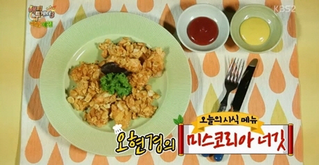 27일 방송된 '해피투게더3'에서 오현경은 적당히 부순 크래커와 닭가슴살을 마요네즈와 함께 버무린 뒤 오븐에 구운 '미코 너깃'을 소개했다. 그는 "평소 아는 엄마들끼리 정보를 공유하다 알게됐다. 아이들에게 자주 해준다"고 설명했다. 이를 맛본 출연자들은 "금방 해서 먹으니 더 맛있다"고 극찬했고, 결국 야간매점 메뉴로 선정됐다. 이에 오현경은 "사실 딸에게 어떤 간식을 해줄까 고민 많이 하는데 다들 좋아해주니 앞으로도 열심히 해봐야겠다는 생각이 든다"며 울먹여 눈길을 끌었다.