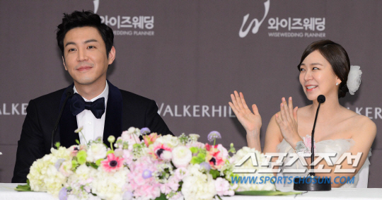 28일 오후 서울 삼성동 코엑스 워커힐 그랜드볼룸에서 열리는 결혼식을 앞두고 취재진과 만난 두 사람은 "기쁘고 설렌다"며 연신 행복한 웃음을 지었다.