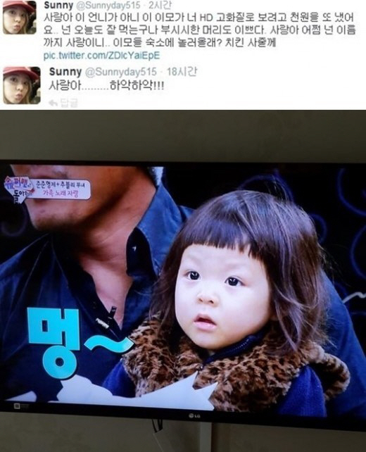 써니 추사랑앓이에 네티즌들은 "써니 추사랑앓이, 사랑이 매력에 빠졌구나", "써니 추사랑앓이, 깨알 인증 귀여워", "써니 추사랑앓이, 치킨보다는 포도를 추천합니다", "써니 추사랑앓이, 나는 써니앓이", "써니 추사랑앓이, 사랑이는 잘 먹어서 더 예쁘다"등의 반응을 보였다. <스포츠조선닷컴>