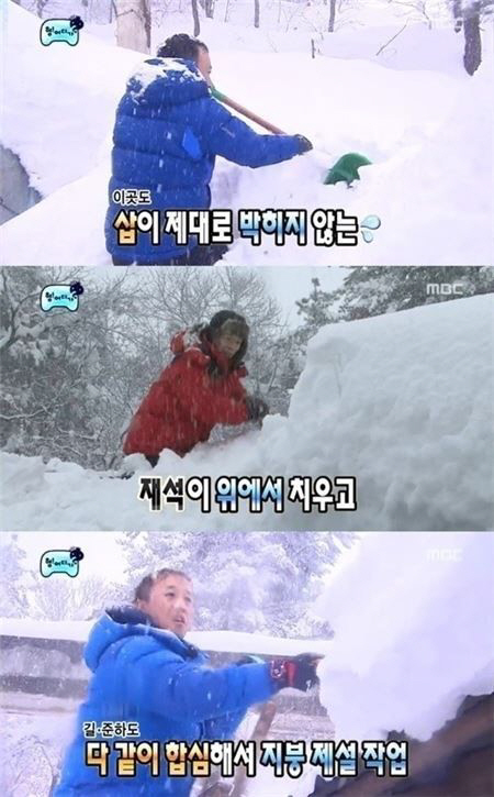 이날 방송은 제설작업과 함께 하하, 정형돈, 노홍철 등 나머지 멤버들이 자메이카에서 '인간탄환' 우사인 볼트와 만나는 장면이 동시에 그려졌다.
