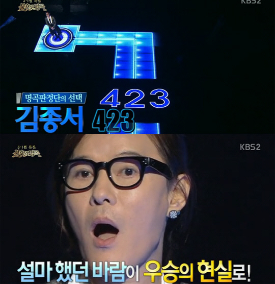 이날 김종서는 423점을 기록해 장미여관-이세준-홍경민&송소희-유미를 연이어 제치며 지난주에 이어 최종 우승을 차지했다.