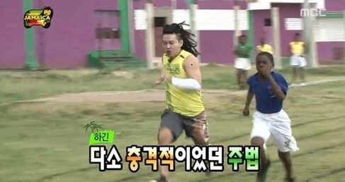 1일 방송됐던 MBC '무한도전'에서는 멤버들의 자메이카 행이 방송됐다. 멤버들은 자메이카 출신 세계적인 선수 우사인 볼트을 만나길 고대하며, 그가 다녔던 초등학교를 방문했다. 그 자리에서 하하 정형돈 노홍철로 이뤄진 자메이카 행 멤버들과 가수 스컬이 우사인 볼트의 후배들과 달리기 대결을 펼쳤다. 어린이들을 상대로 일대일 달리기에서 패배를 거듭했던 멤버들은 릴레이 경주에서도 졌다. 특히 평소 근엄한 모습의 스컬이 살찐 체중을 견디지 못하고, 아줌마 주법으로 뒤뚱뒤뚱 뛰는 주법은 멤버들을 충격에 몰아넣었다. 스컬은 이 장면으로 하나로 시청자들의 배꼽을 잡게 만든 신스틸러가 됐다.