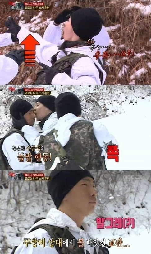 지난 2일 방송된 MBC '일밤-진짜사나이' 특공 불사조대대 편에서는 헨리가 스키 교관에게 기습뽀뽀를 하는 모습이 전파를 탔다.