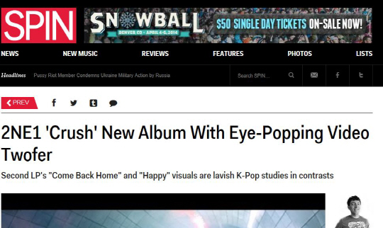 이 밖에 3일 미국 유명 매거진 '스핀(SPIN)'과 미국 유명 음악 전문 사이트 '팝더스트(POPDUST)' 역시 2NE1의 컴백과 뮤직비디오에 관해 집중 조명했다.