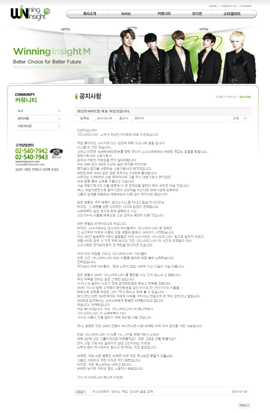 이어 "만일 '미스터미스터'가 다른 YG, JYP등 대형기획사 소속의 데뷔 2년차 신인 그룹이었다면 어땠을까? 과연 그대로 진행 했을까? 단지 소형 기획사의 알려지지 않은 신인이라는 이유로 노력과 땀이 무시되어도 된다고 생각하는 것은 횡포이다"고 덧붙였다.