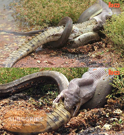 이 뱀은 5시간여의 사투를 벌인 끝에 악어를 통째로 삼켜 넘겼으며, 악어를 삼키는데 걸린 시간만 15분 정도였던 것으로 알려졌다.