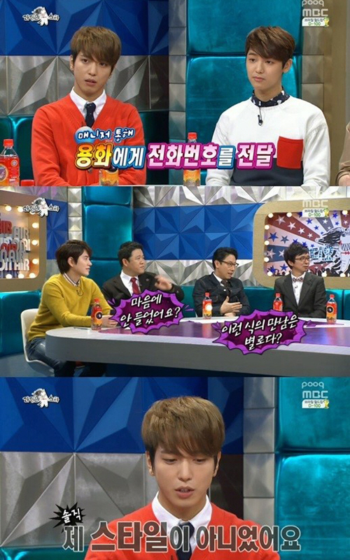 이날 MC들은 "씨엔블루가 걸그룹한테도 인기가 많다고 하더라"며 "특히 정용화는 A급 걸그룹 멤버가 매니저를 통해 연락처 알려달라고 쪽지를 건넨 적도 있다고 하더라"고 운을 뗐다.
