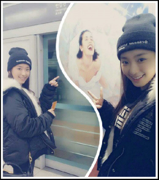 공개된 사진에는 보라가 맘마미아 포스터를 가리키며 카메라를 향해 활짝 웃고 있다. 특히 보라는 편안한 옷차림과 화장기 없는 얼굴로 수수한 여대생의 매력을 뽐냈다.