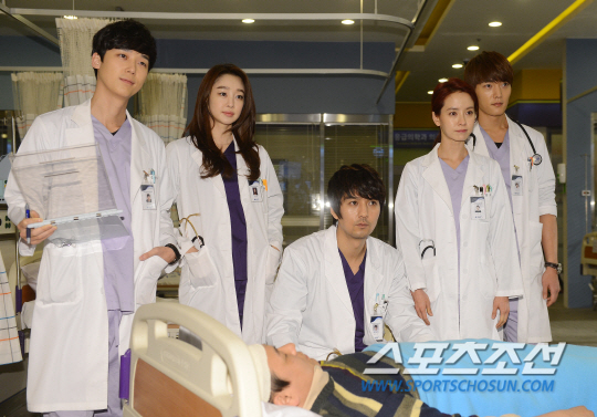 6일 오후 경기도 남양주 진전읍 맹가노니 스튜디오에서 tvN 드라마 '응급남녀' 현잔공개가 진행됐다. 윤종훈, 최여진, 이필모, 송지효, 최진혁이 포토타임에서 포즈를 취하고 있다. '응급남녀'는 6년 전에 이혼했던 원수 같은 부부 오진희(송지효), 오창민(최진혁)이 병원응급실에서 늦깎이 인턴으로 다시 만나 펼치는 로맨틱 코미디 드라마다. 남양주=김보라 기자boradori@sportschosun.com/2014.03.06/