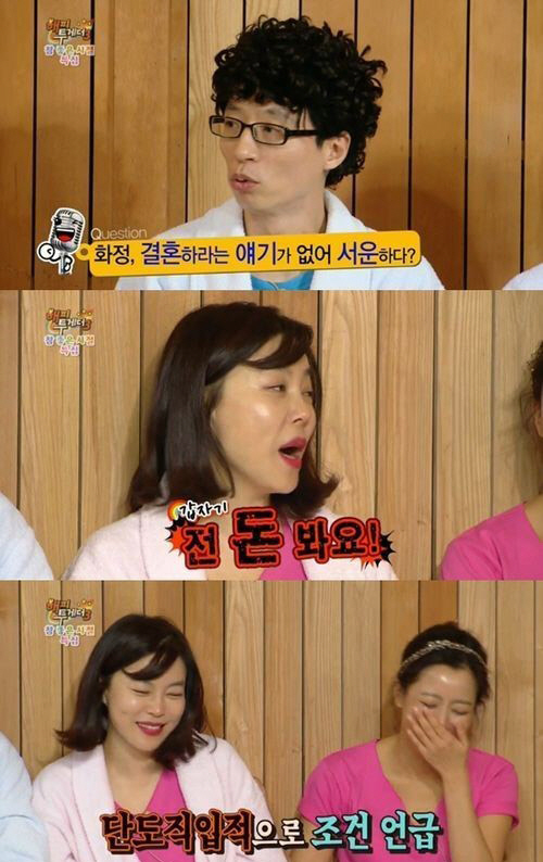 이에 네티즌들은 "최화정 완전 솔직하다", "최화정 결혼 조건으로 돈 보는구나", "최화정 급 솔직 발언에 유재석도 당황한 듯", "최화정 말발 장난 아니다" 등의 반응을 보였다. <스포츠조선닷컴>