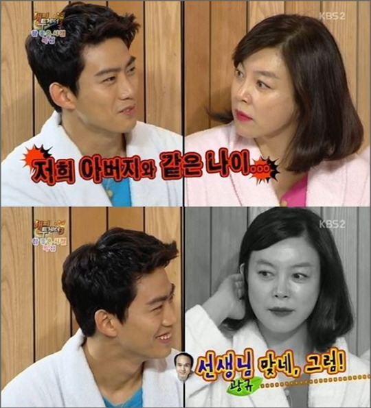 이어 MC 박미선은 "택연은 최화정에게 누나라고 부른다던데 부모님 연세가 어떻게 되느냐"고 물었다. 택연은 "화정 누나는 우리 아버지와 나이가 같다"고 밝혀 출연진들을 놀라게 했다.
