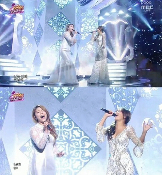 에일리와 효린은 8일 방송된 MBC '쇼! 음악중심' 400회 특집에서 영화 '겨울왕국' OST '렛잇고'를 불렀다.