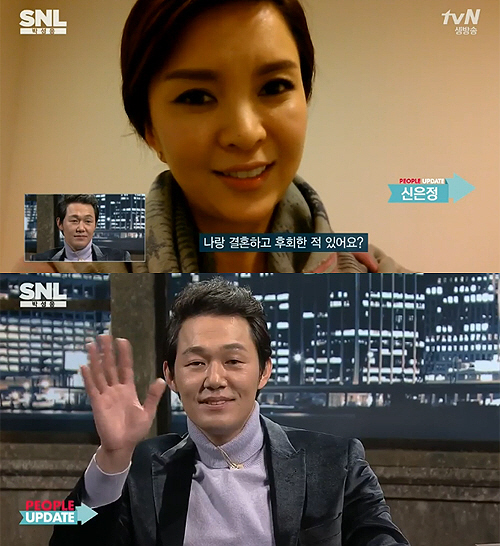 이날 신은정은 화면을 통해 "내가 이렇게 갑자기 나타난 건 어려운 질문 두 개 정도 하려고 나타난 거다. 내가 지금부터 질문할 테니 솔직하게 대답해주길 바란다"며 "나랑 결혼하고 후회한 적 있냐. 그리고 좀 유치한 질문이긴 한데 다시 태어나도 나랑 결혼할 생각이 있냐"고 질문했다.