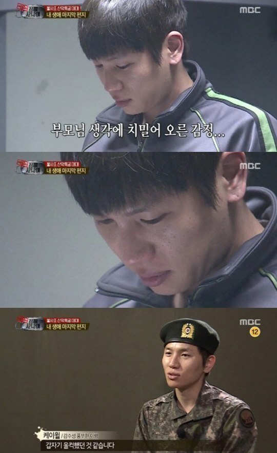 '진짜 사나이'에 출연중인 가수 케이윌이 눈물을 보였다.