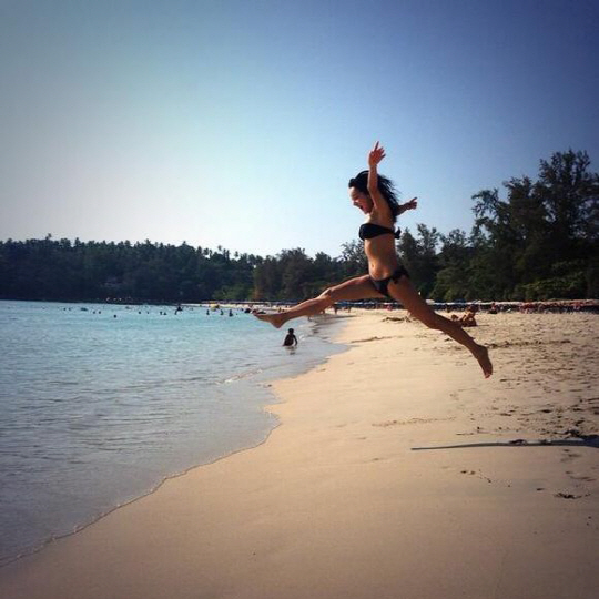 공개한 사진에는 바다 속으로 뛰어드는 바다의 모습이 담겨 있다. 신나는 표정으로 바다를 향해 힘껏 뛰어오르는 그녀는 특히 검정 비키니 속 군살 없는 탄탄한 몸매를 자랑해 눈길을 끈다.