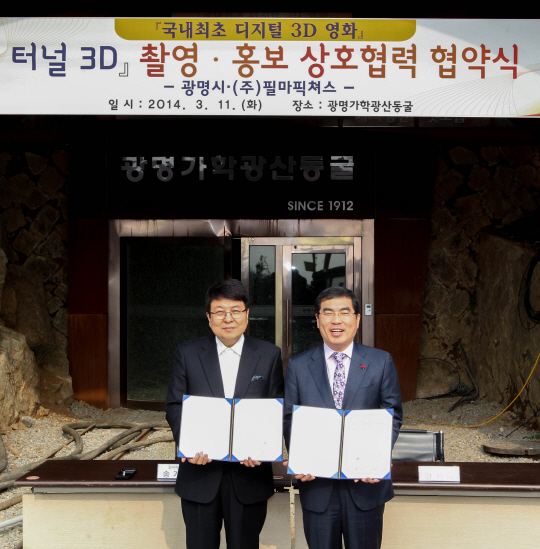 지난 3월 11일 광명시(광명시장 양기대)와 제작사 필마픽쳐스(회장 송기윤)는 영화 '터널 3D'의 촬영지원 및 광명가학광산동굴 홍보 등에 대해 상호협력 하기로 한 협약을 체결하였으며 협약식을 마쳤다.
