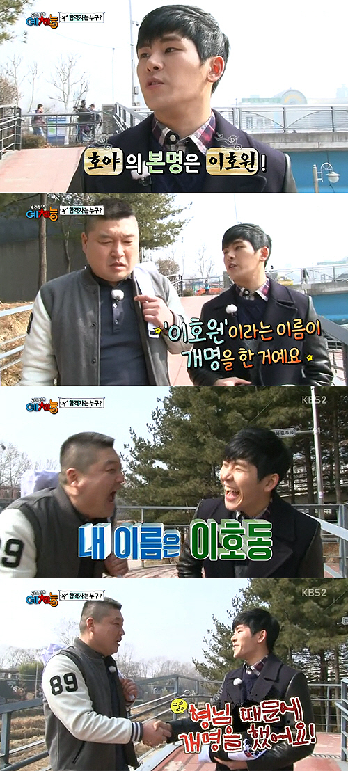 이에 호야는 "사실 밝힐 게 있다. 여기서 처음으로 밝히는 거다. 사실은 내 본명이 이호원인데 그 이름은 개명한 거다"라고 털어놨다. 이어 "개명 전 내 이름은 이호동이었다. 방송에서 처음 밝히는 건데 강호동 형님 때문에 개명했다"고 말해 놀라움을 샀다.