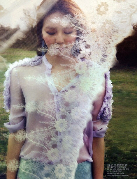 공개된 사진 속에는 짙은 화장을 한 이솜이 연한 보라색 계열의 시스루 상의를 입은 채 눈을 감고 청순미 넘치는 모습을 선보이고 있다.