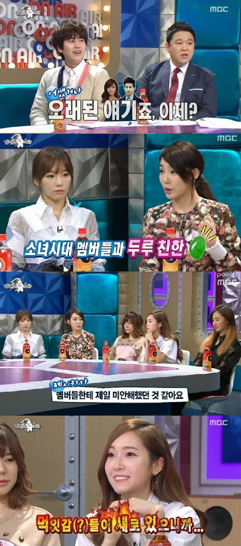 12일 방송된 MBC '황금어장-라디오스타'에서는 '지금은 연애시대' 특집으로 소녀시대 멤버 태연, 티파니, 제시카, 유리, 써니가 출연한 가운데 윤아와 수영, 효연, 서현이 불참했다.