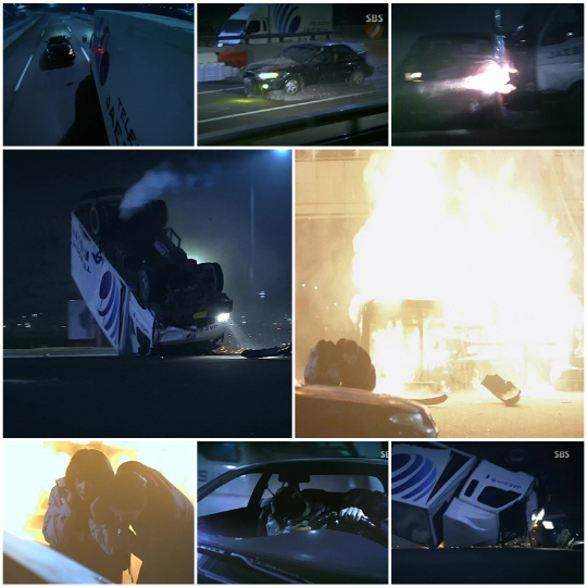 카체이싱이 끝난 후에는 전복된 탑차가 엄청난 굉음과 함께 폭발하는 장면까지 연출됐다. 이 한 장면을 위해 제작진은 무려 2억원을 투입한 것으로 알려졌다.