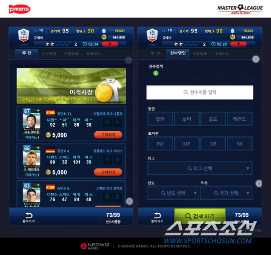 네오위즈게임즈는 모바일 축구 시뮬레이션 게임 '히딩크의 마스터리그'에 이적 시장 기능을 오픈했다고 13일 밝혔다.