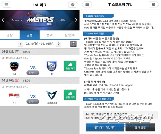 한편 'T스포츠팩' 가입 없이도 무료로 다운로드 받아 즐길 수 있는 'T LoL' 앱은 모바일에서 손쉽게 접근할 수 있는 편리한 환경, 작은 모바일 화면에서도 생생하게 시청 가능한 HD 초고화질 영상 등의 장점으로 출시 이후 지금까지 50만 다운로드를 돌파했으며 지난 2월 월 UV(순방문자수) 17만 건의 접속을 기록하는 등 좋은 반응을 얻고 있다.