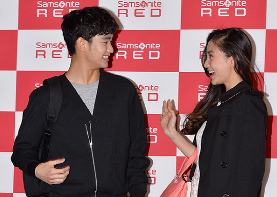김수현과 안젤라 베이비는 13일 오후 서울 강남구 논현동 플래툰 쿤스트할레에서 열린 '쌤소나이트 레드' 2014 S/S 프레젠테이션에 참석했다.