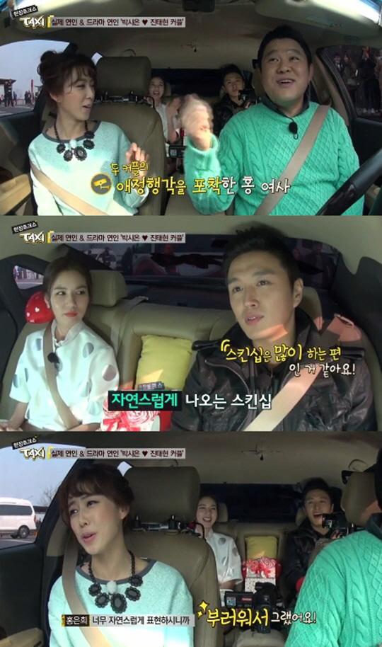 이에 박시은은 "뽀뽀는 안 했다"며 "머리가 좀 아파서 기댔다. 스킨십은 자연스럽게 나오는 것 같다"고 말했다. 또한 진태현은 "스킨십은 많이 하는 편인 것 같다"라고 솔직하게 털어놔 눈길을 끌었다.