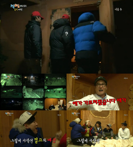 예고편에는 빈틈없이 감시 카메라를 설치해 놓은 제작진이 갑자기 사이렌을 울리며 쉬고 있는 멤버들의 숙소로 진격했고, 그 순간 김주혁이 "얘가 가르쳐줬습니다"라며 멤버 중 누군가를 지목하는 모습이 담겨 있다. 또한 양 모자를 쓴 김준호가 김종민과 투닥 거리며 '그렇게 시작된 밀고와 배신'이라는 자막이 겹쳐져 도대체 이들에게 무슨 일이 벌어진 것인지 궁금증을 갖게 만들고 있는 것.
